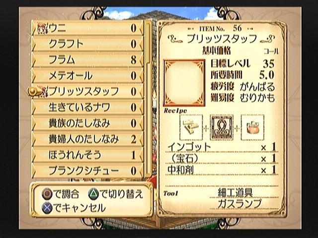 まずは調合難易度の高いブリッツスタッフを調合…して、わざと失敗する。