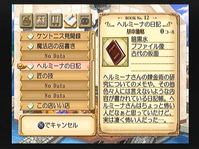 古代の仮面のレシピが載っている参考書はヘルミーナの日記。