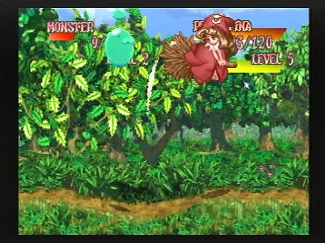 相手のジャンプに合わせて低威力の箒攻撃で何度も転ばせて