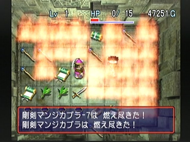 アスカだけ生き残った後は炎めがけて手持ちのアイテムを投下して焼却処理。