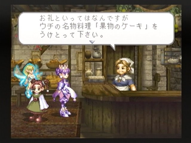 バルカンの魔法石と名物料理の果物のケーキを入手した。