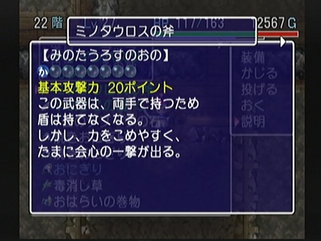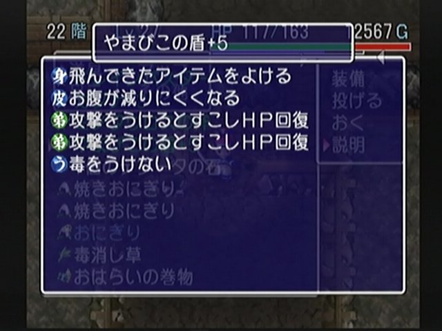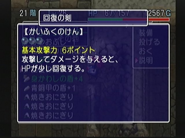 衰弱の枝、妖刀かまいたち、見切りの盾、正面戦士の盾といった装備が出て