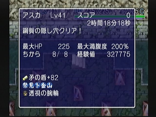 食料はにぎりもとじめで確実に手に入るし盾は矛の盾+82で攻防共に文句なし。