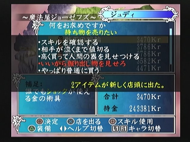 ジュディは最初に買ったショックが使える術具をチマチマ簡易修理しながらやってる。